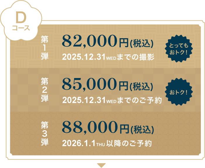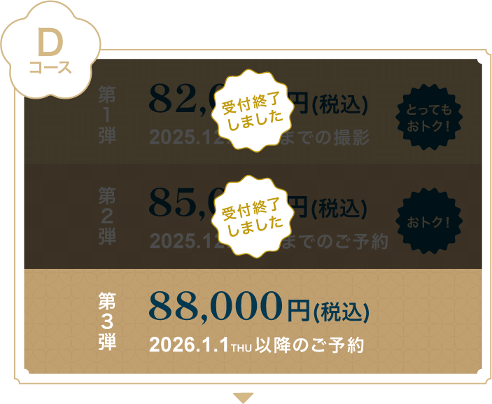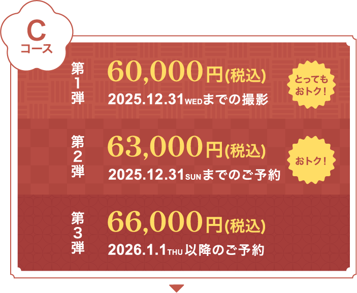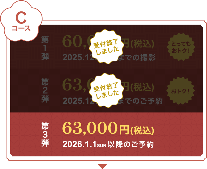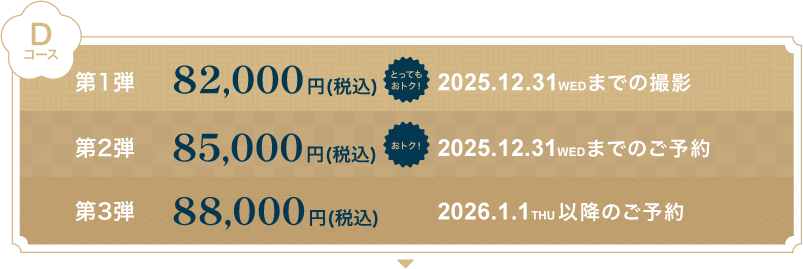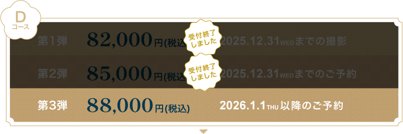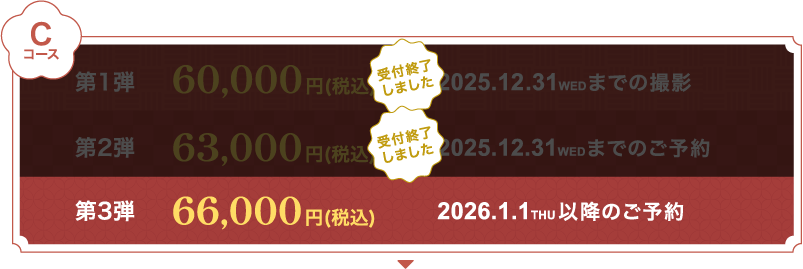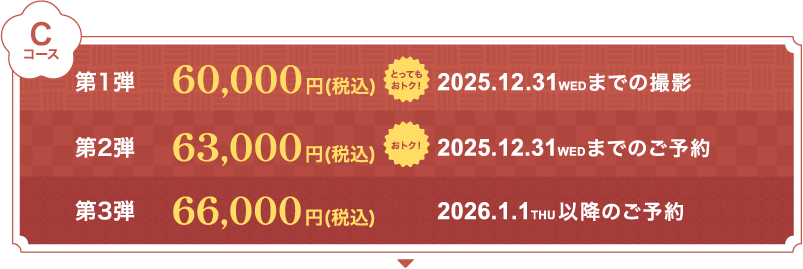 C・Dコースの第1弾(12月31日までの撮影)とその他の予約入口が異なりますのでご注意ください。