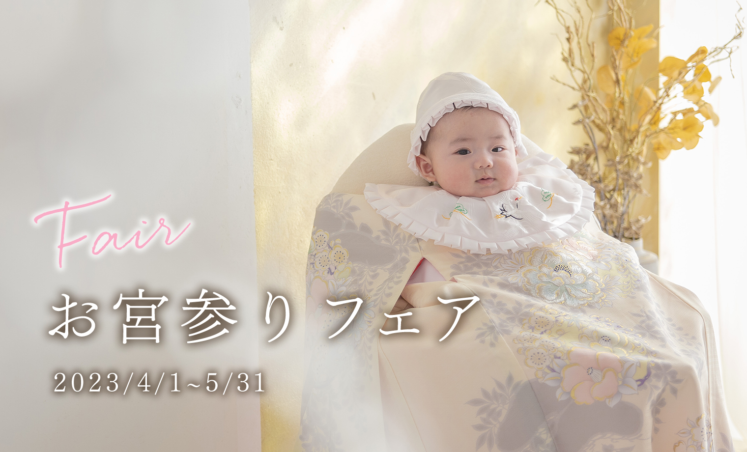 スタジオコフレのお宮参りフェアをご利用いただくと、パパママ着付け(通常価格11,000円)が無料でご撮影が可能です💡