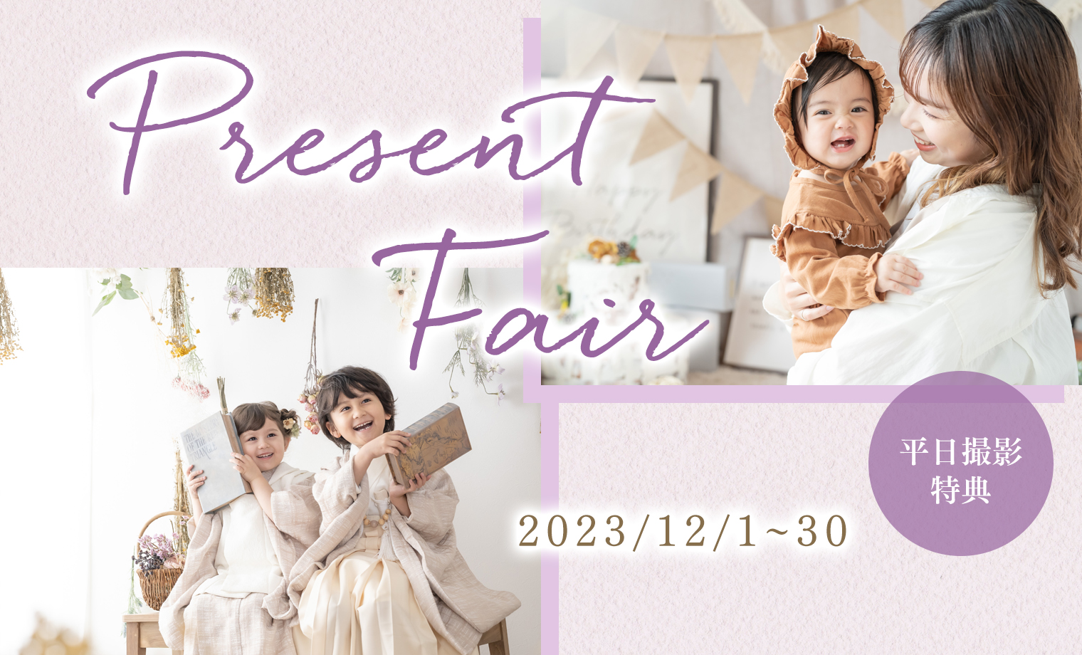 ※キャンペーン併用は不可のため、一宮スタジオオープニングキャンペーン・南草津スタジオオープニングキャンペーン・江東スタジオオープニングキャンペーン・2周年anniversaryキャンペーン・西新井大師リニューアルオープニングキャンペーン・七五三1dayPlanとの併用は不可です。