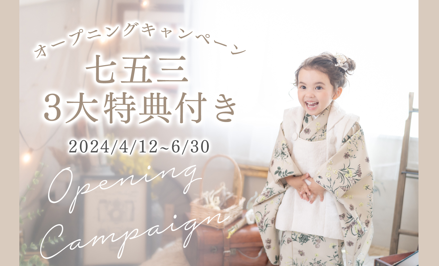オープンを記念して七五三前撮り撮影がオトクに撮影できる特典をご用意いたしました。