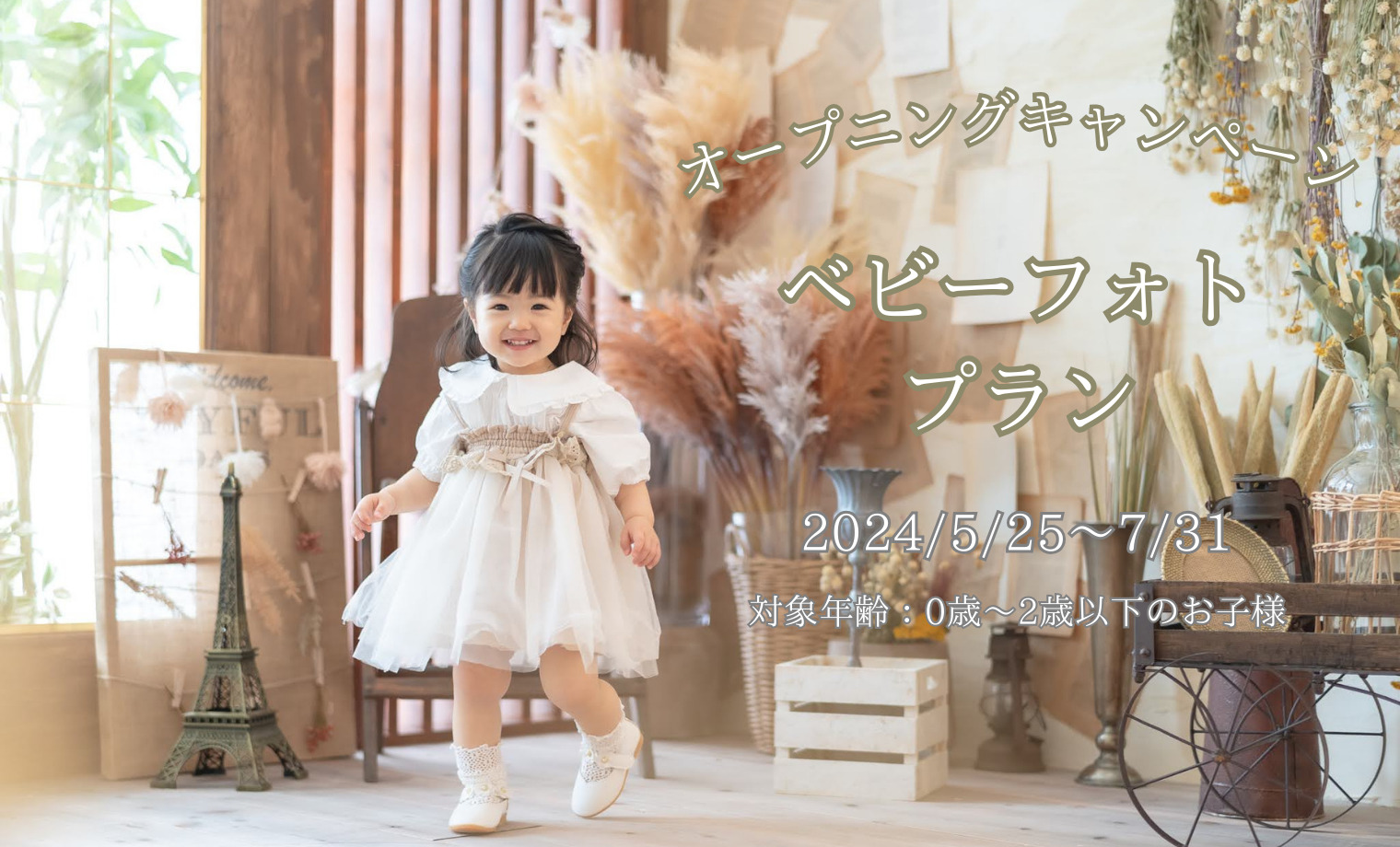 オープン記念として、今回スタジオデビューやバースデーなどにおすすめのベビーフォトプランをご用意いたしました。