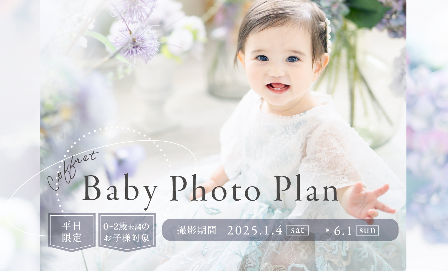スタジオコフレではベビー撮影向けの新プランが期間限定で登場いたします。