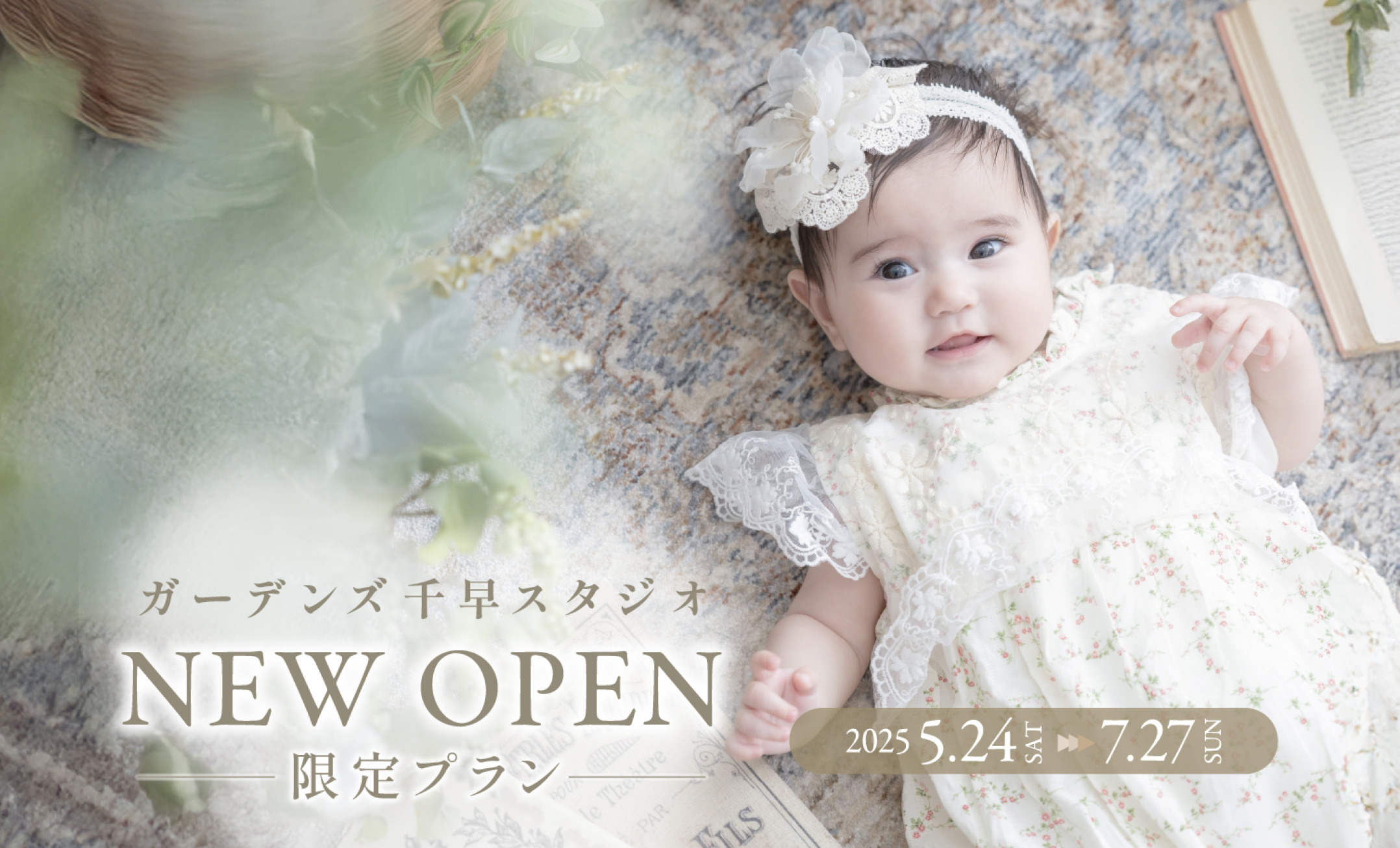 ご予約時に「ガーデンズ千早スタジオ 限定ベビープラン」撮影をご希望とお伝えください。