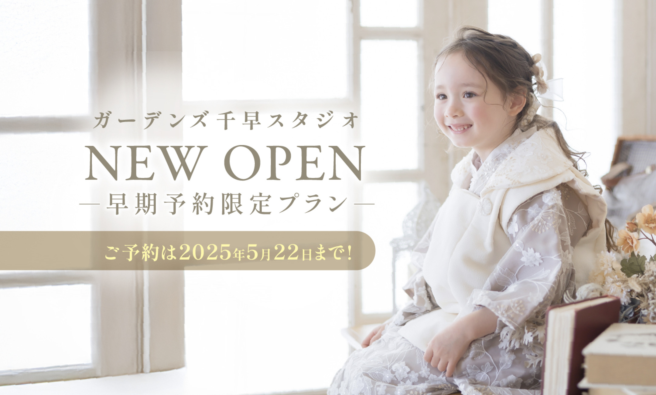 ご予約時にガーデンズ千早スタジオで「七五三早期予約限定プラン」をご希望とお伝えください。
