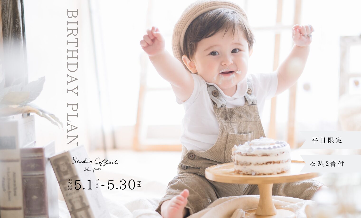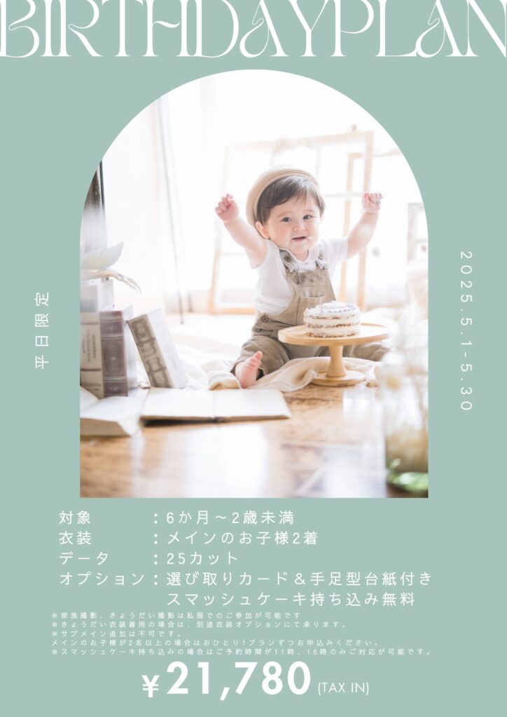 スタジオコフレでは、6ヶ月~2歳未満のお子様のお誕生日をお祝いできる
