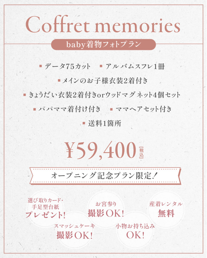 上記すべてのプランで、1歳のお誕生日記念でご来店のお客様に