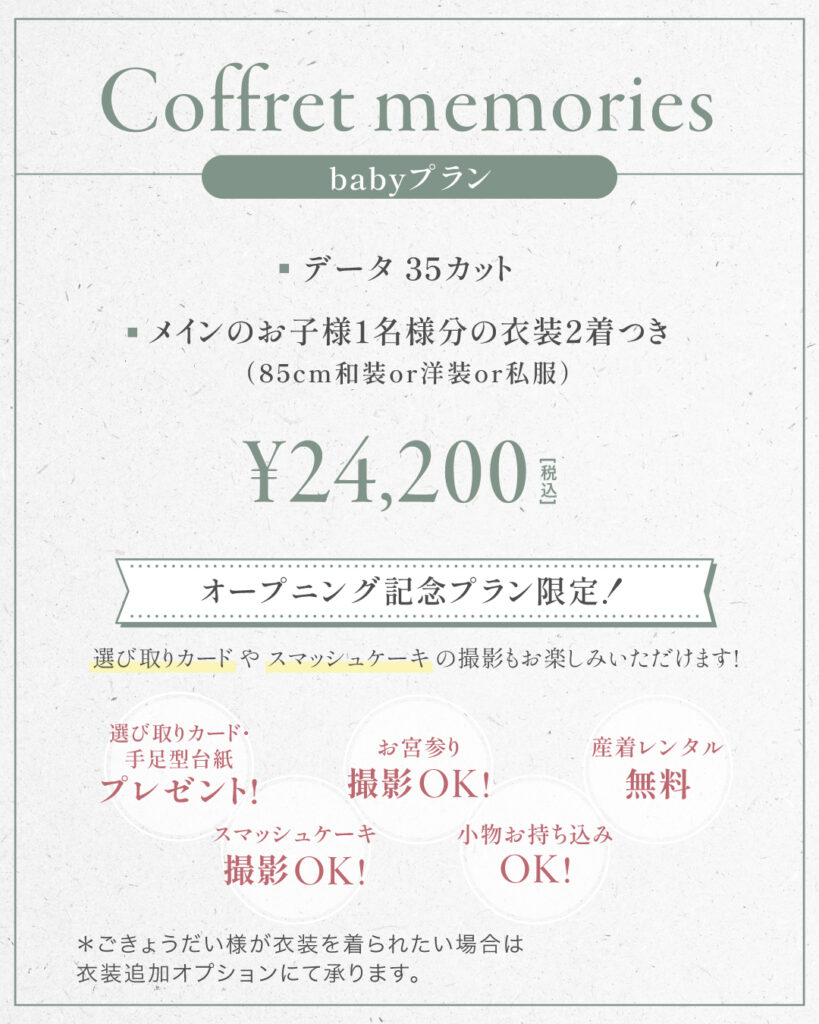 ご予約時に「太田スタジオ 限定ベビープラン」撮影をご希望とお伝えください。