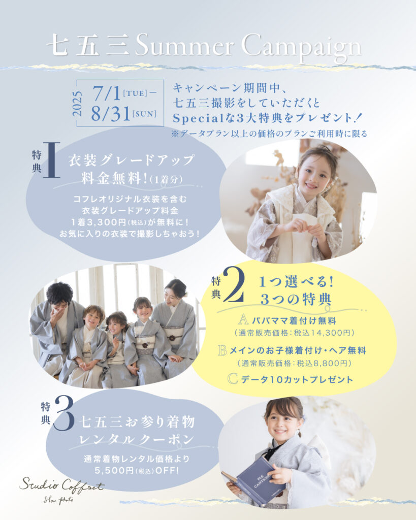 specialな3大特典がついてくる!コフレの涼しい店内で夏こそ「七五三撮影」はいかがですか?