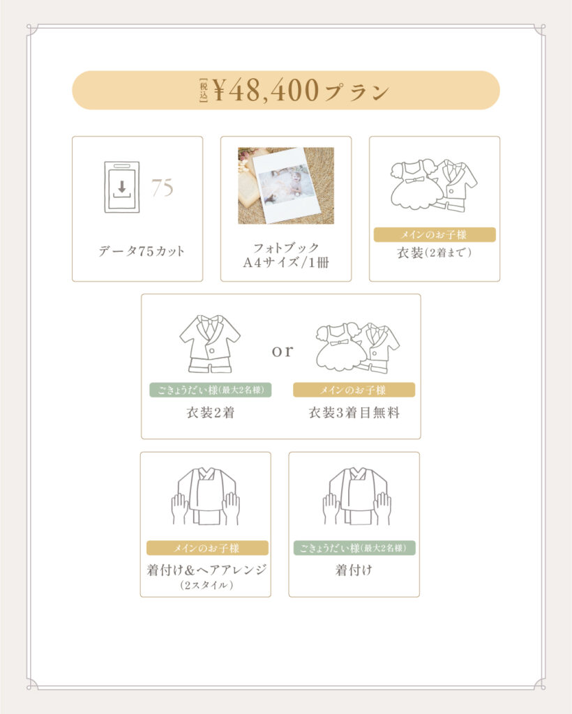 ・きょうだい衣装2着付き(最大2名様)orメインのお子様衣装3着目無料