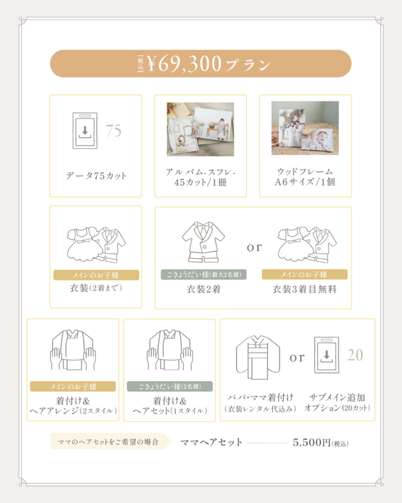 ※ごきょうだい様の衣装追加の場合は6,600円(税込)にて承ります