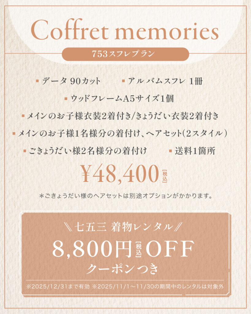 「七五三撮影」早期予約限定プランのご予約を