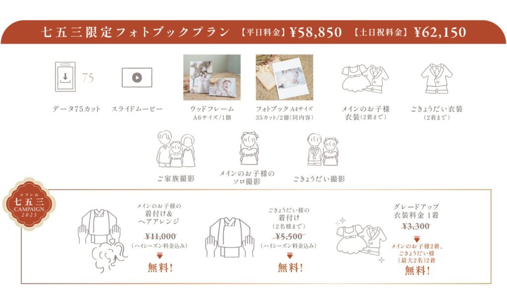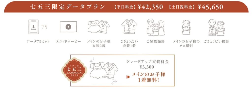 是非、オプションも無料でついてくる【コフレの七五三キャンペーン2025】をご検討下さい。