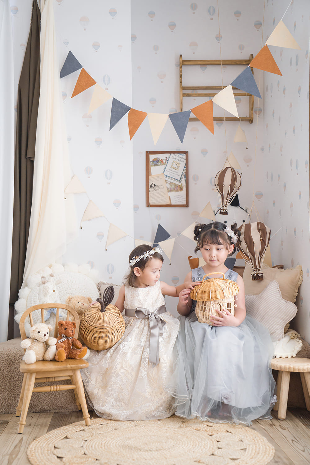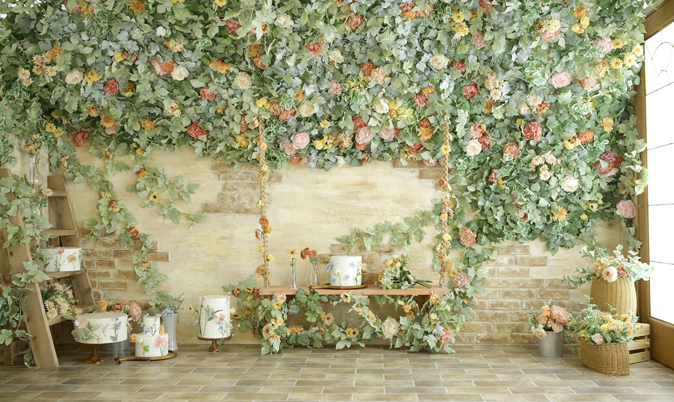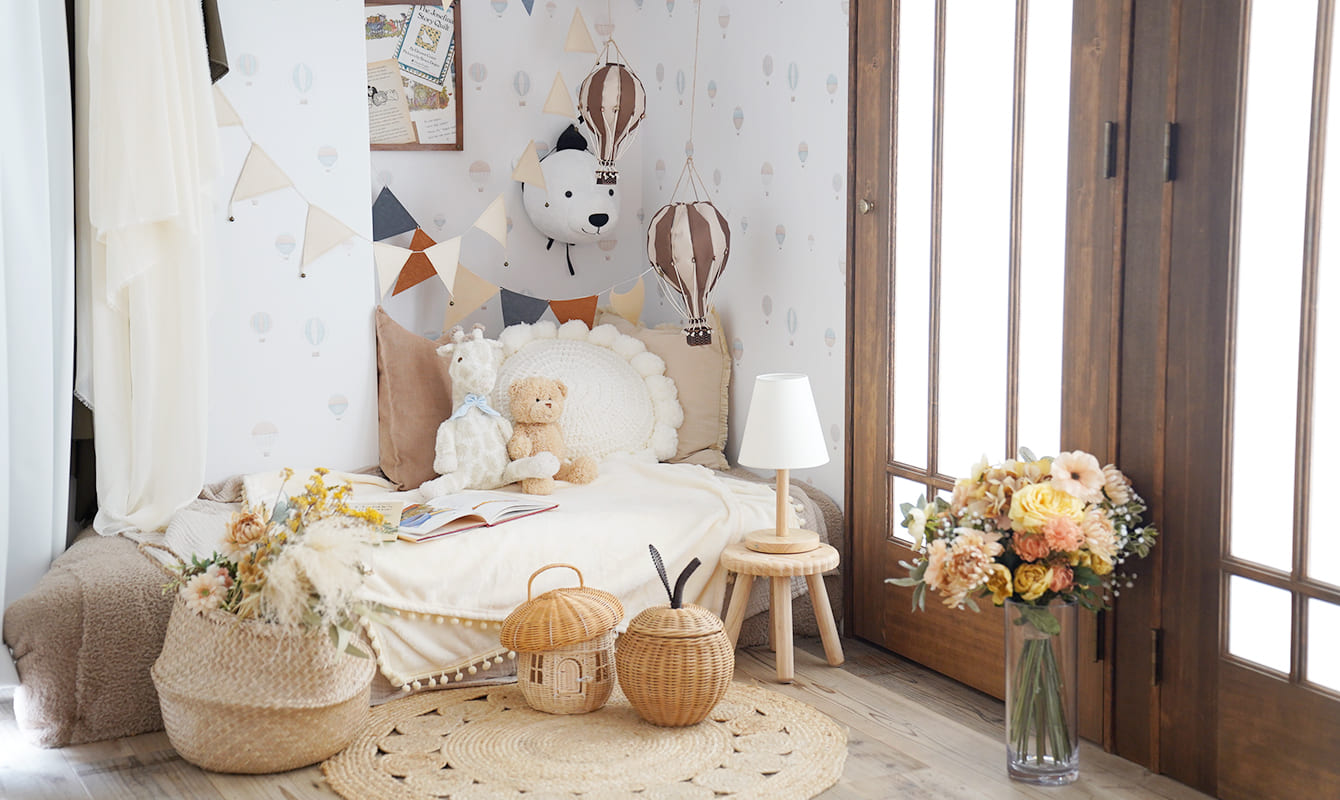 スタジオ内も3つのシーンでできており、ベッドのある子供部屋や、走り回りたくなるような森のブランコの空間、シンプルな白の空間で構成されております。