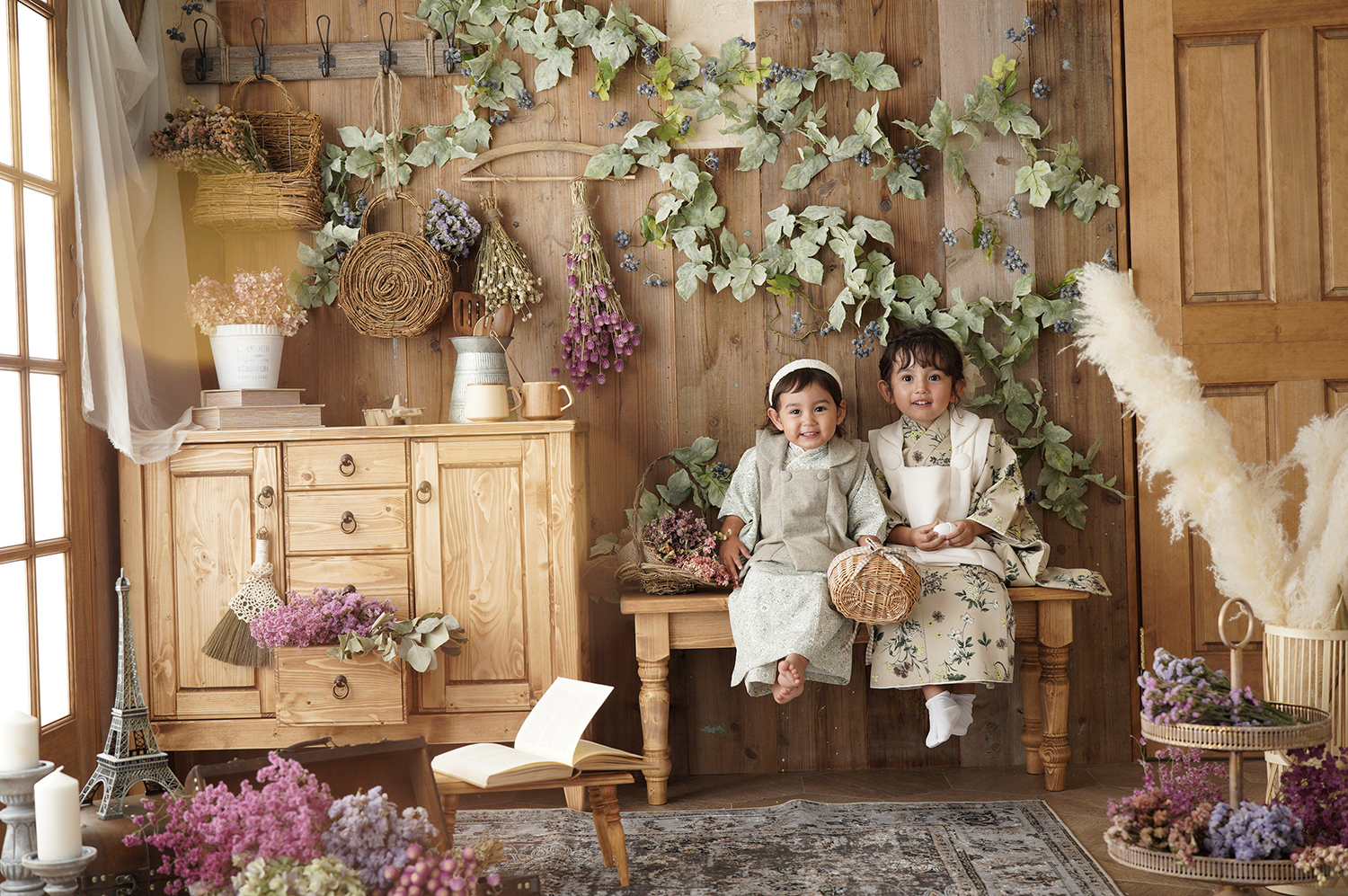 アンティークやブランド品など、スタジオの世界観に合わせたお洋服や和装を豊富にご用意していますので、ご家族の個性やご希望を生かしたコーディネートをご提案することもできます。