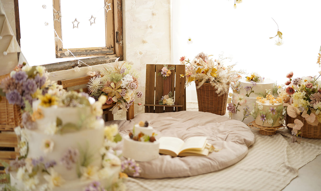 ケーキがいっぱいのオリジナルバースデースタジオだけでなく、広々としたスタジオ空間で、お客様のご要望をしっかりお伺いしながら撮影を進めさせて頂きます♪