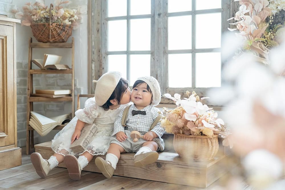 あたたかいお部屋のような安心できる空間で、自然体のお子さまが見せる表情、しぐさをカタチに残します。