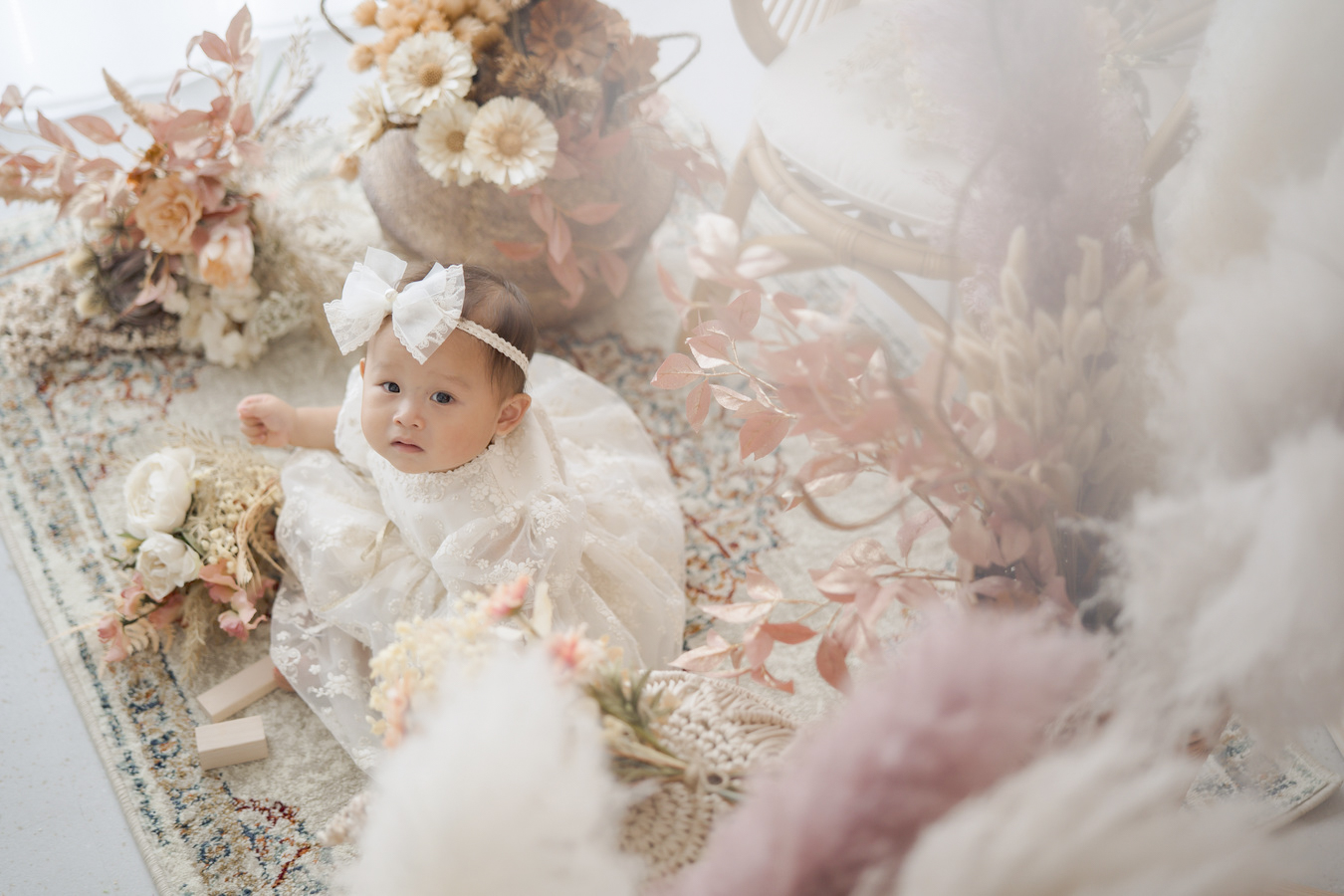 泣いてしまっても大丈夫。キッズ撮影のプロが、お子さまのペースに寄り添い安心して撮影いただけるようサポートします。授乳ルームやおむつ替えスペースもあるのでベビーちゃんも安心して過ごせます。