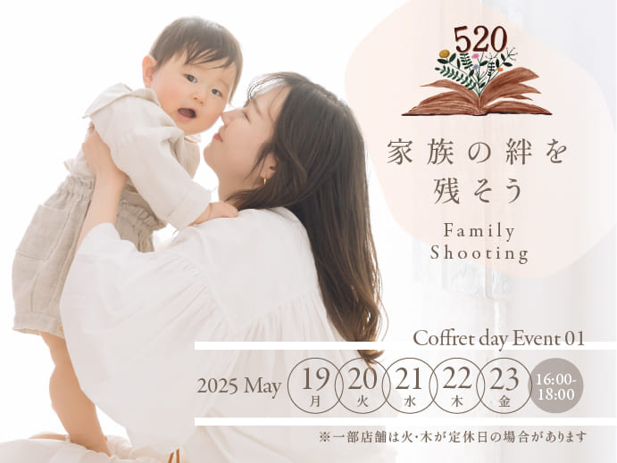 普段お子様の写真を撮ることが多くても、パパやママと写った写真はなかなか撮れない…というママから頂く声があり、気軽に家族写真をきれいに残せる時間を作りたいと企画しました。