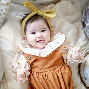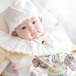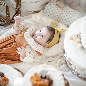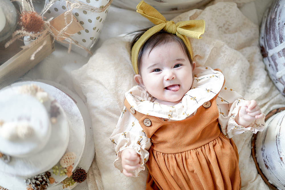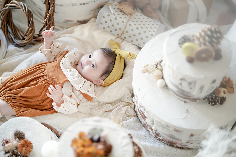 生まれて半年の6カ月目をお祝いするハーフバースデー撮影。よく笑うようになったり、離乳食が始まる頃の特別な成長を記念に。