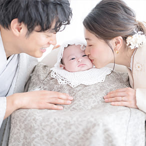 3歳、5歳、7歳のお子さまの成長を祝う七五三撮影。店舗ごとに衣装が違うため別の店舗でも衣装選びが楽しめます。