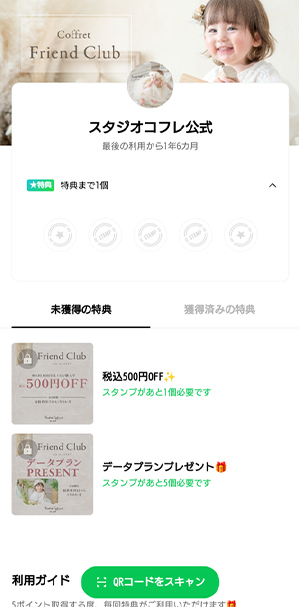 コフレフレンドクラブは、スタジオコフレ公式LINEのポイントカードを利用したコフレ独自のポイントカード制度。